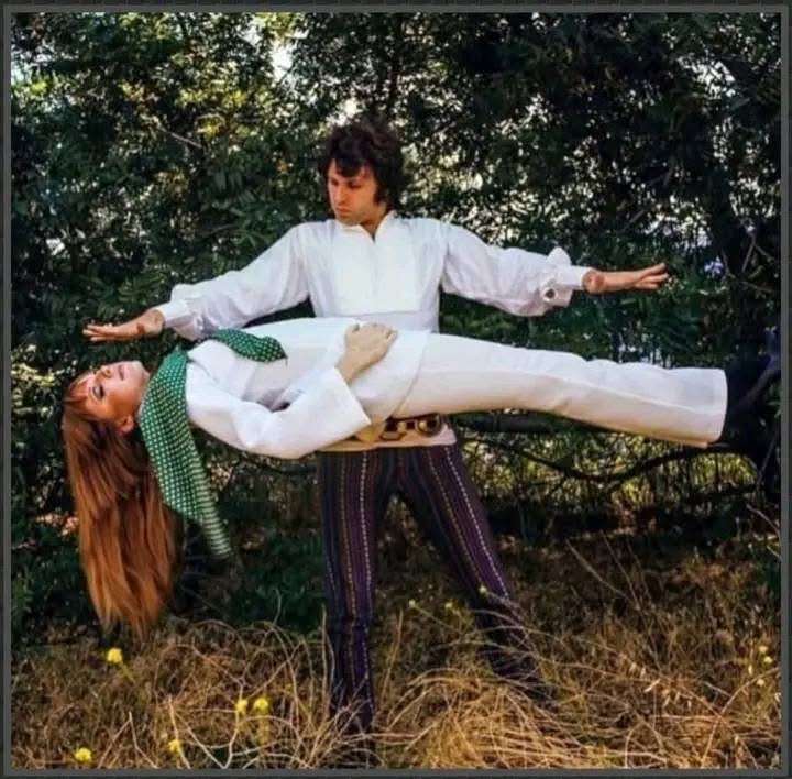 In the summer of 1968, as The Doors were reaching the height of their fame, Jim Morrison stepped into one of the most curious and whimsical moments of his public life. Around July of that year, renowned photographer **Frank Bez** organized a now-famous photo session at the **Hollywood Bowl**, featuring Morrison, his longtime lover **Pamela Courson**, and a brunette model named **Cathy Christiansen**. The result was a surreal series of images that seemed to blur the line between performance, poetry, and illusion — photographs that gave life to the idea of Morrison as both a rock star and a mystic capable of “levitating women.”