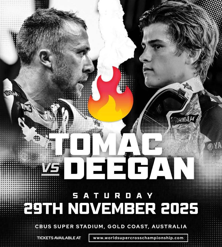 The anticipation surrounding the World Supercross Championship reached a fever pitch as fans across the globe prepared for one of the most symbolic matchups in modern motocross: **Eli Tomac, the seasoned icon**, versus **Haiden Deegan, the rising star and future of the sport**. Set against the roaring backdrop of Australia on **November 29, 2025**, this showdown carried not only athletic weight—but generational meaning.