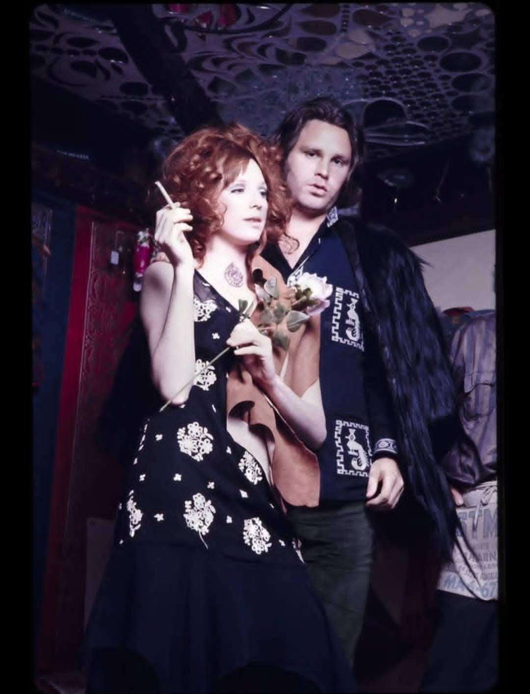 In November 1969, Jim Morrison and Pamela Courson stepped in front of Raeanne Rubenstein’s camera for a *Show Magazine* photo shoot that has since become one of the most intimate visual windows into their life together. Shot inside Themis — Pamela’s mysterious, almost mythical Los Angeles boutique — the images capture a moment when fashion, music, counterculture, and young love collided in an atmosphere of velvet, incense, and rebellion.
