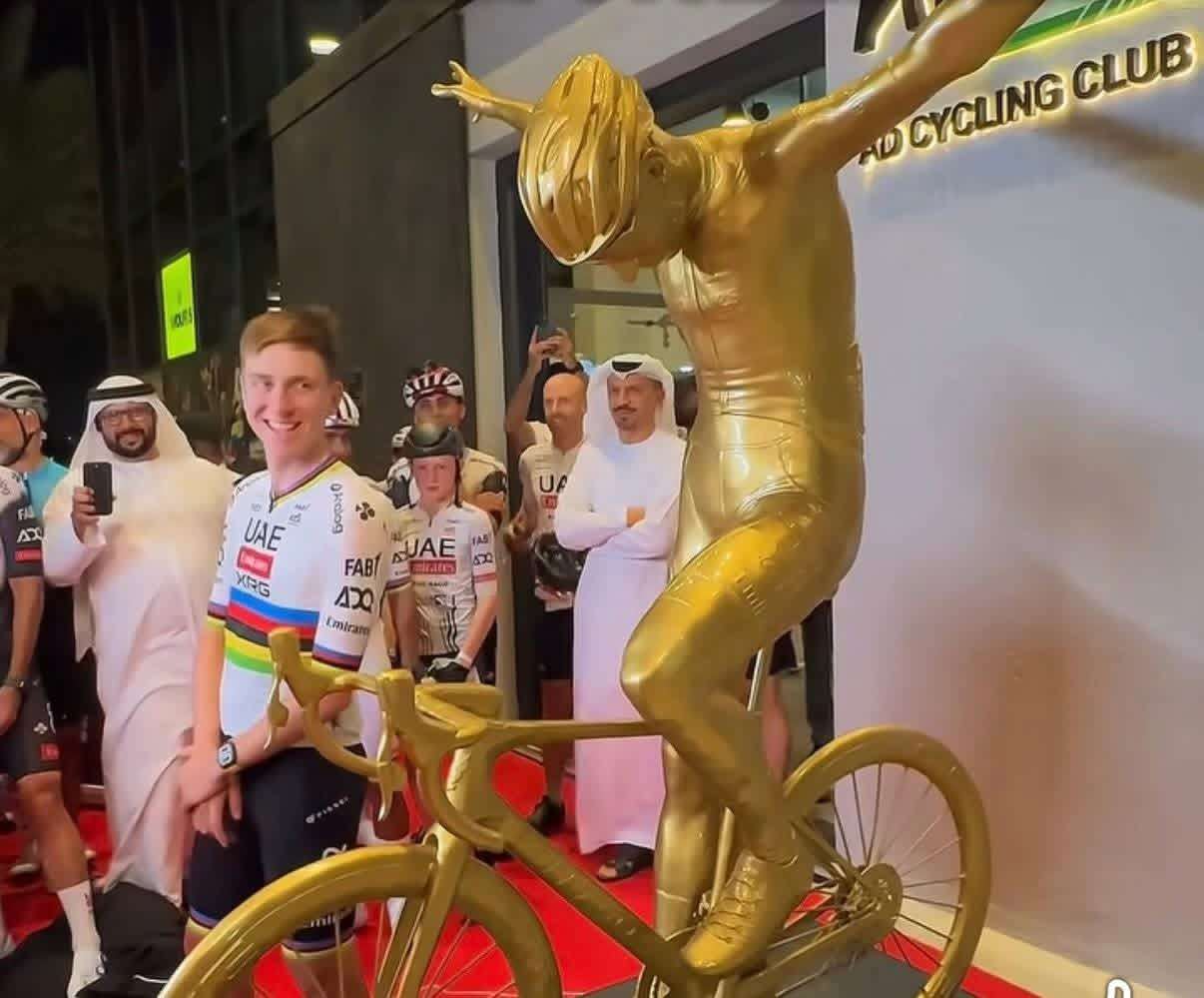 Za kolesarskega superzvezdnika **Tadeja Pogačarja** je bil to zlati trenutek v vseh pogledih, saj so arabski sponzorji pred kratkim slovesno podelili **zlati kip**, s katerim so priznali njegove izjemne dosežke in trajno predanost **ZAE Team Emirates**. Dogodek, ki je potekal v Abu Dabiju, je združil vodstvo ekipe, sponzorje, dostojanstvenike in kolesarske navdušence iz vse regije, da bi proslavili moža, ki je postal ne le obraz sodobnega kolesarstva, temveč tudi ponosni simbol naraščajočega vpliva ZAE v svetovnem športu.